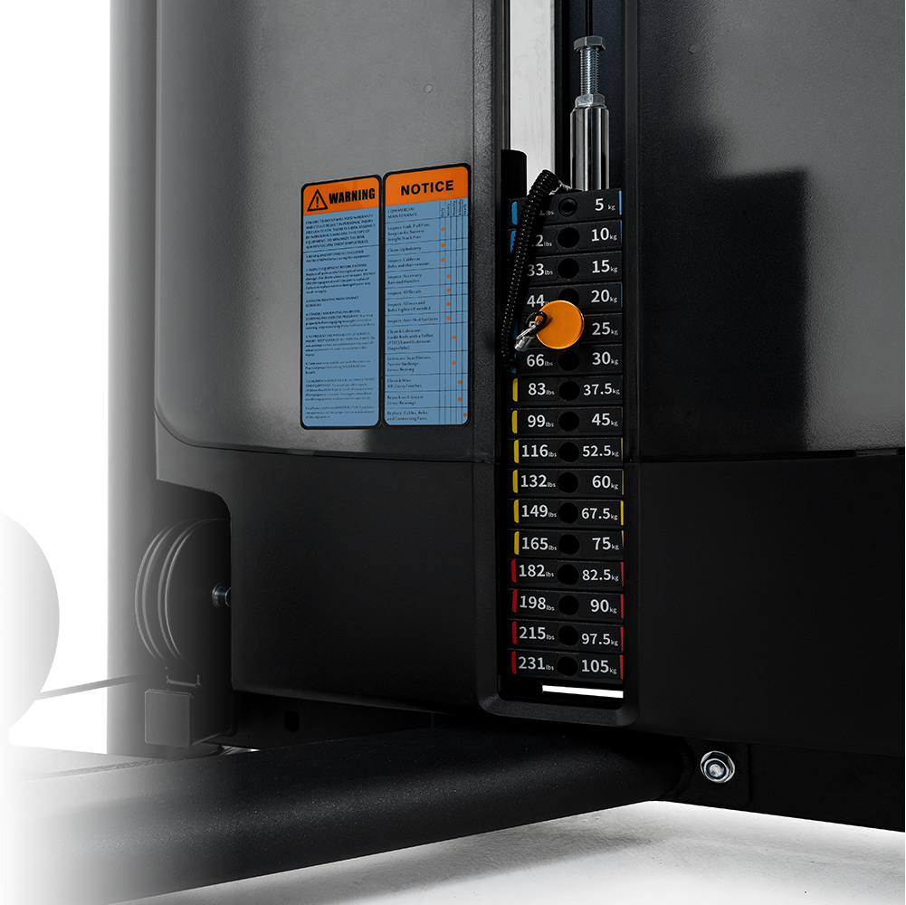 La trajectoire guidée naturelle réduit les tensions articulaires et prévient les blessures. Le siège ergonomique et les réglages simples garantissent confort et accessibilité pour tous les niveaux. Le système de poulies renforcé assure fluidité et durabilité en usage intensif.